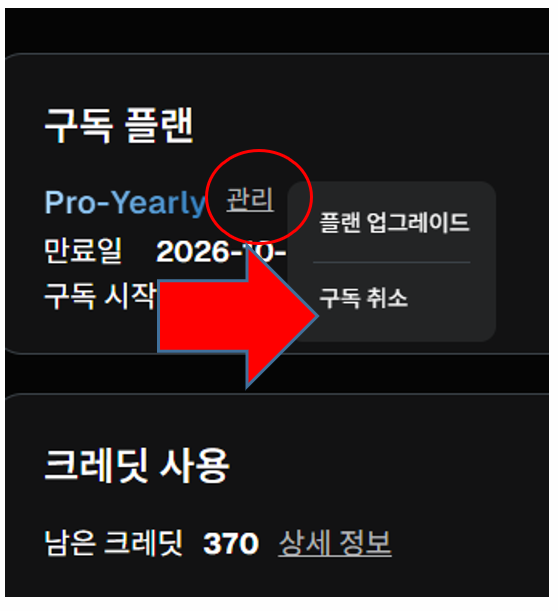 4. 계정을 클릭하면 구독플랜이 나와요 구독플랜오른쪽 옆 관리를 누르면