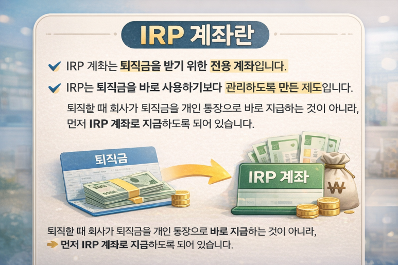 👉 IRP는 퇴직금을 바로 쓰지 않고 관리하도록 만든 제도입니다.